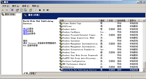 3、启动IIS(参考1 停止IIS的操作)。再启动WWW Publishing Service。