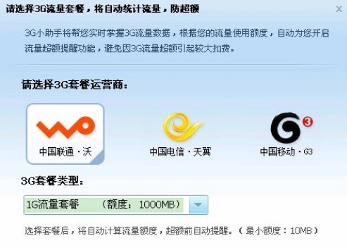 360"3G小助手"支持各类流量套餐,可以防止流量超额