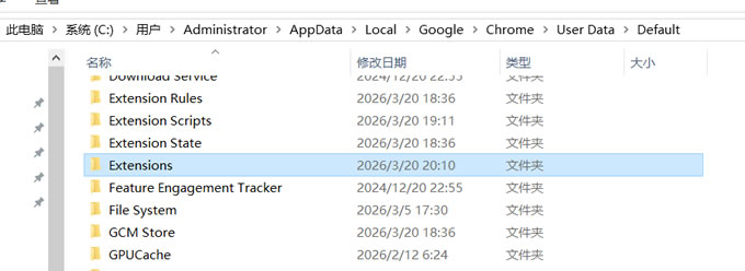 在这个目录里,Extensions 文件夹就是你的Chrome扩展程序存放的位置。