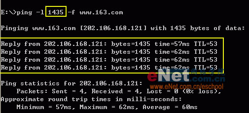 C:\Documents and Settings\Administrator>ping -f -l 1452 192.168.1.1