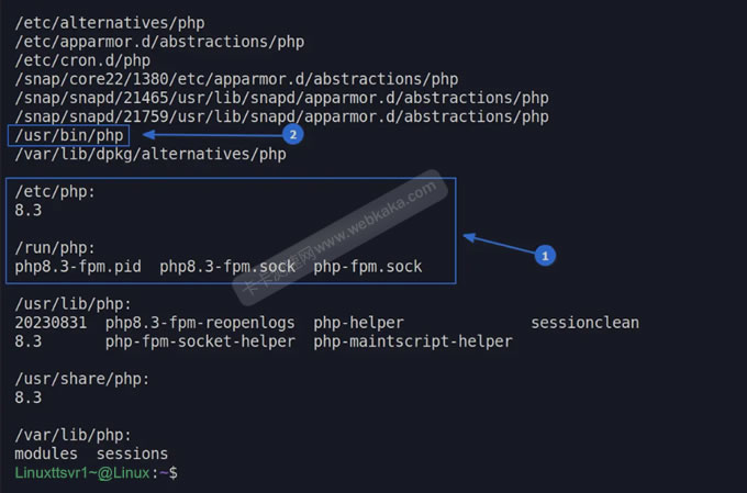 当你运行上面的命令时,它将返回所有PHP文件,有时在输出中包括PHP版本,如图所示。