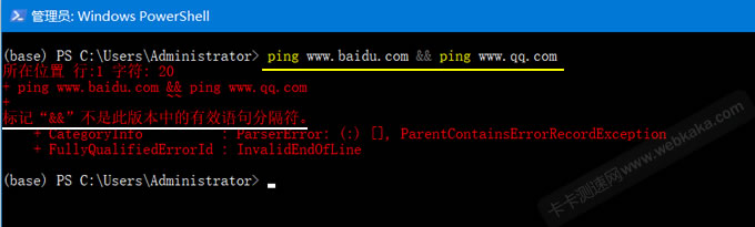 需要说明的是,在 PowerShell 中,这个写法是无效的,会提示:标记“&&”不是此版本中的有效语句分隔符。