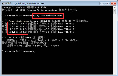 同样可以选择在卡卡网的线ping测试工具http://www.webkaka.com/ping.aspx。