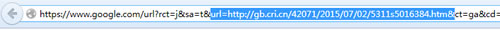 找到“url=*********&”这串字符后,星号“********”这段便是我们要的东西了,这个就是要打开的网页的真实地址,通常都是以“.html”或“.htm”后缀结尾。注意了,前面的“url=”和后面那个“&”不需要哦,这只是个标识字符而已,我们是根据它们找出那个真实的网页地址的。如上面我们要提取的网址是: