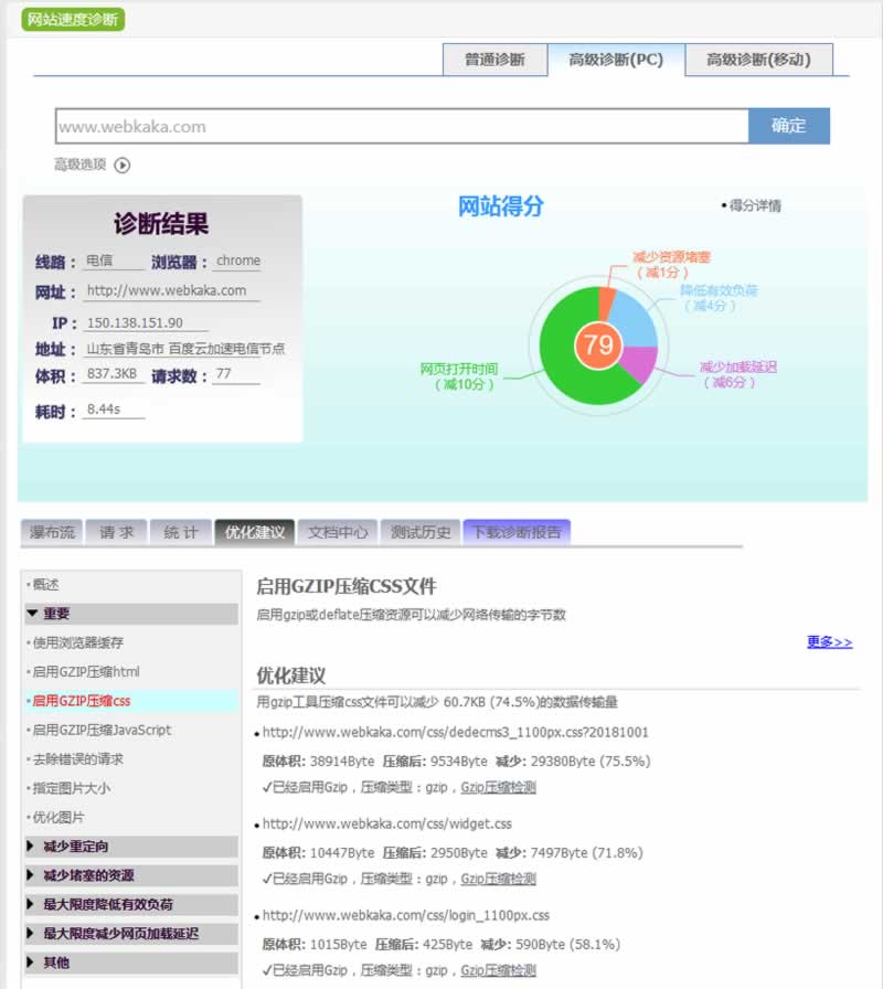 卡卡网站速度诊断是开发人员经常用来分析网站速度和前端性能的免费工具。例如,如果你运行简单的网站速度测试,卡卡网站速度诊断会为你提供一些有用的 CSS 优化技巧。