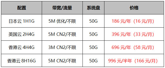- 云服务器首单低至2折,日本/香港机房优惠空前,日本云服务器1H1G首购仅需186 元/年,香港高性能4H4G云服务器,永久696元/年,低至58元/月,无套路续费同价更省心。