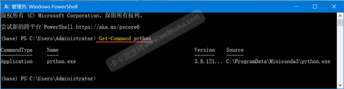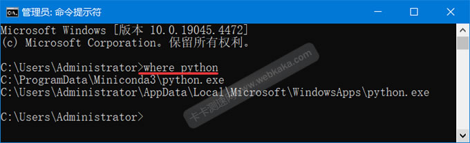 可以打开CMD窗口,然后执行 where python 命令来确认。